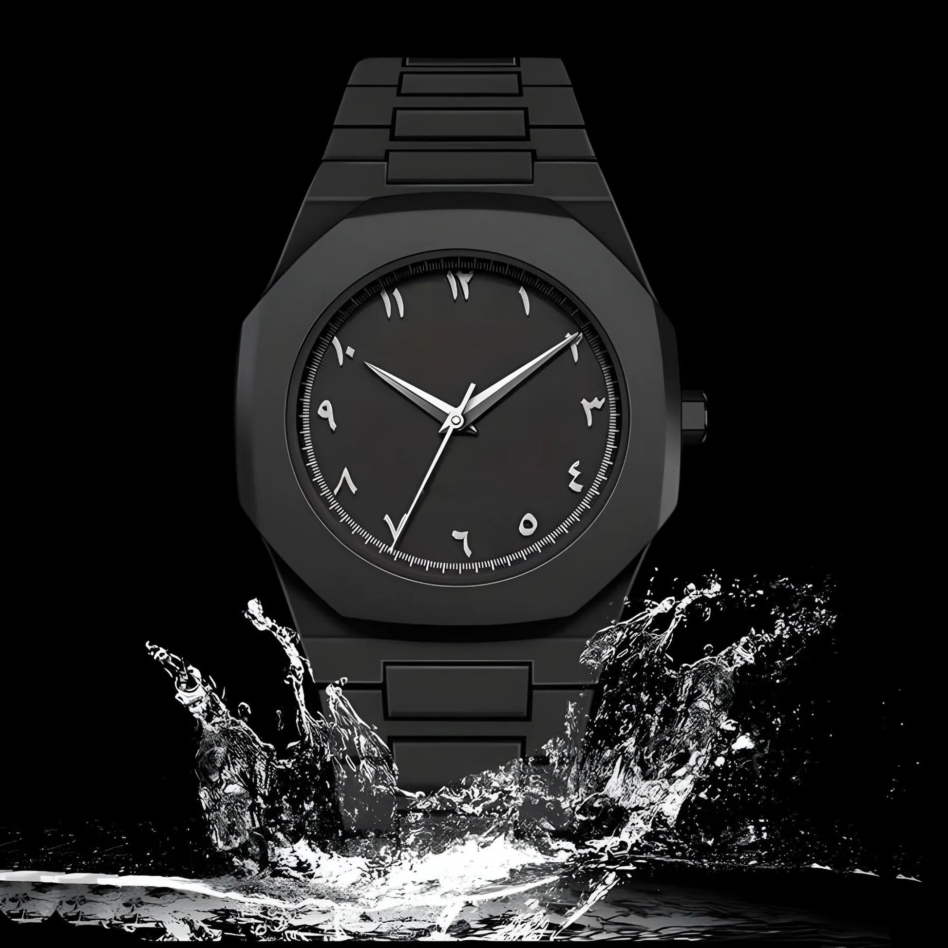 Arabic Aura Watch 2025 Black Modern Creative Design Waterproof Stainless Steel Chain Quartz Movement